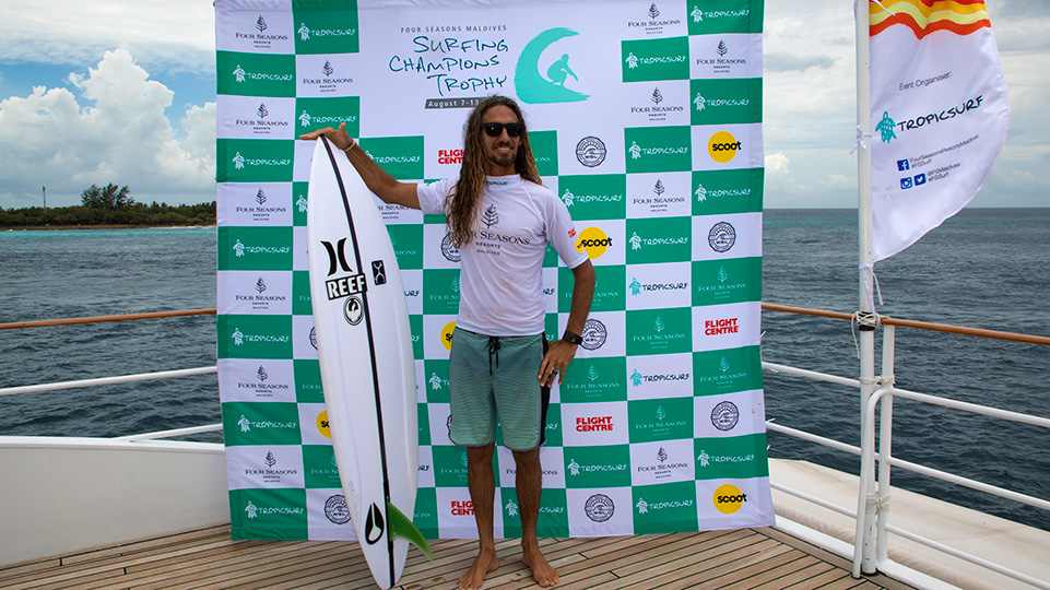 The 2017 Four Seasons Maldives Surfing Champions Trophy has finally kicked off at Sultans point in clean 2 – 4 foot waves. Day one saw the completion of the Single Fin division, which was taken out by Californian style guru Rob Machado.